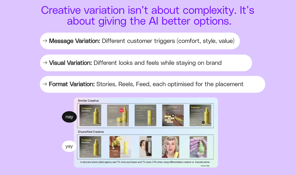 Yet most brands are still making tiny tweaks or running the same ads when they should be creating genuinely different variations.